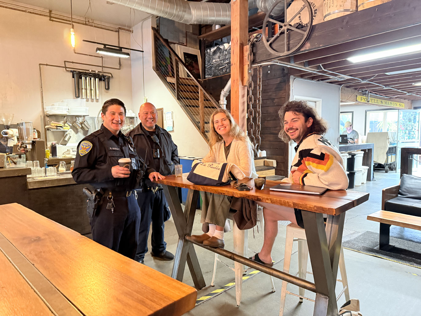 On National Coffee with a Cop Day, October 1st, San Francisco police officers from four stations stepped away from their desks and patrol cars to meet residents at local coffee shops across the city.